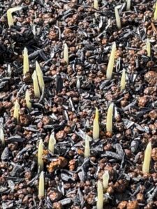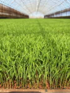 そして早朝の苗出しを終えた令和8年産の苗は… お水をたっぷりあげると、数日でこんなに成長しました♪♪♪ 丈夫で美味しいお米の苗に成長してね。